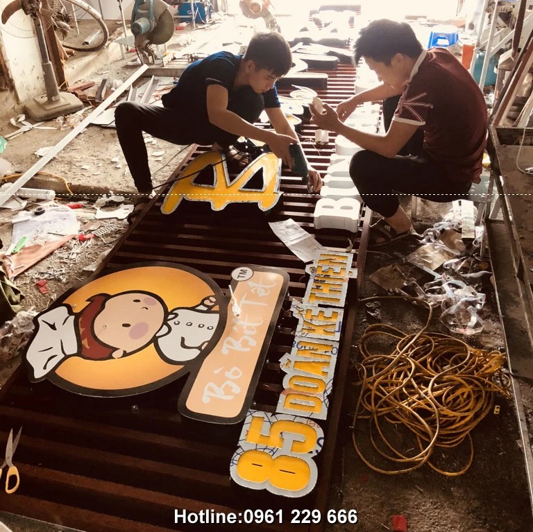 Làm biển quảng cáo tại Kim Giang, làm biển hiệu đẹp ngay tại xưởng nên thời gian hoàn thành sản phẩm ngắn và tiết kiệm được chi phí chi khách hàng.