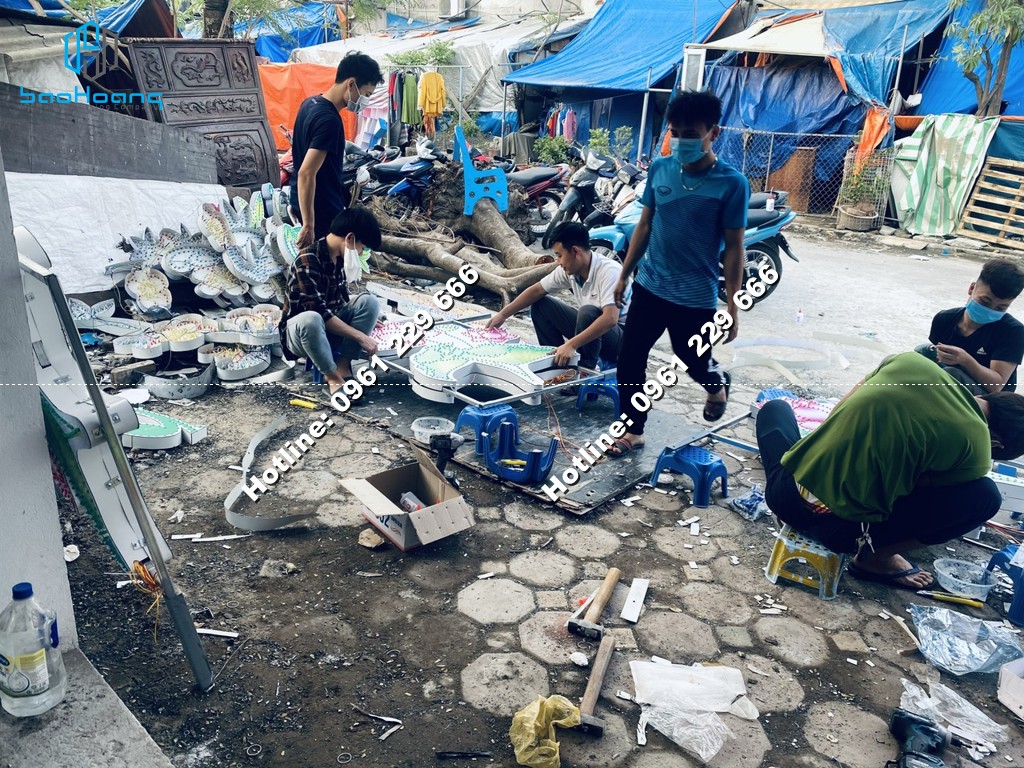 - Chất liệu mica, alu gắn led lên trên chữ, lập trình chạy nháy nhiều kiểu đa dạng. Bạn sẽ có cơ hội sở hữu những tấm biển quảng cáo chữ nổi gắn đèn led ưng ý nhất tại BẢO HOÀNG.